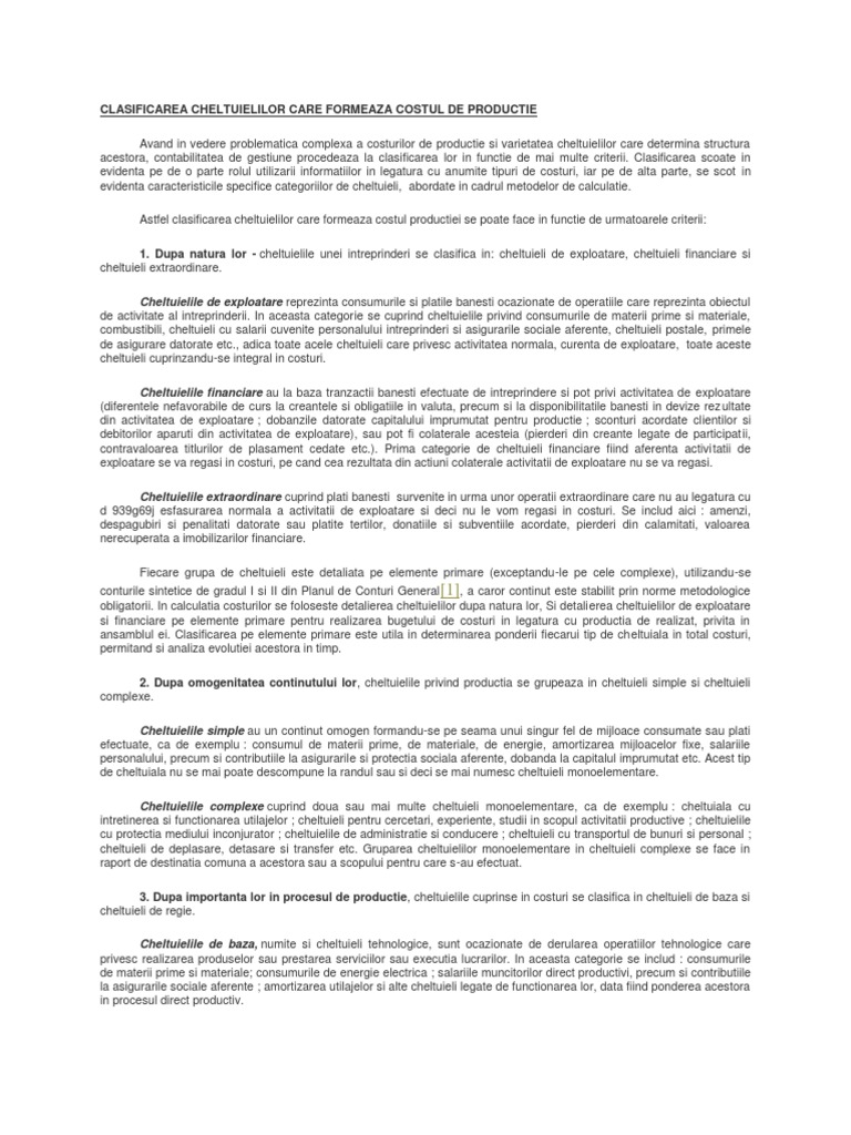Cheltuieli de exploatare , care la randul lor cuprind. Cheltuielile de exploatare reprezinta reflectarea in contabilitate a costurilor inregistrate de companie ca urmare a derularii activitatilor conform obiectului sau de. Cheltuielile cu materiile prime si consumabilele, cheltuieli cu salariile, cheltuieli cu asigurarile sociale, cheltuieli cu serviciile, cheltuieli cu reducerea valorii activelor, cheltuieli cu amortizarile, alte cheltuieli (din vanzarea activelor imobilizate, din despagubiri.