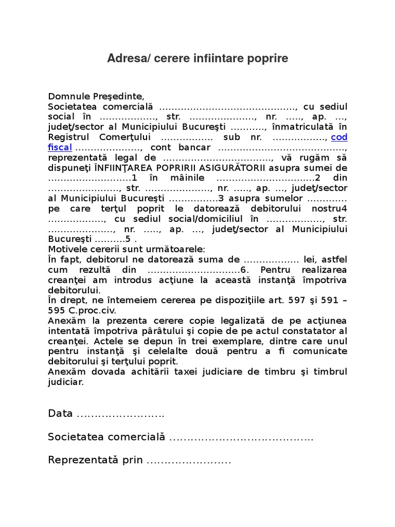 Adresa De Infiintare A Popririi Model